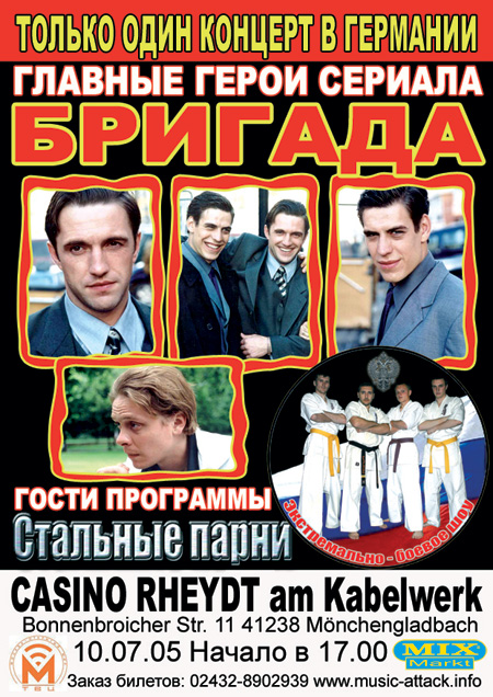 Hauptdarsteller des Mehrserienfilmes "Brigada" in Deutschland. "Provokazija". Extremsport - Show "Eiserne Burschen". Superprojekt des Jahres "Perez" mit seinem Konzertprogramm "The Live". Das Programm dauert ca. 2,5 - 3 Stunden. Tickets hier!