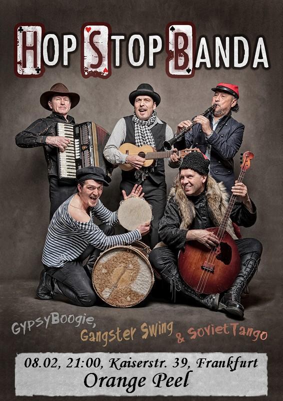 Во Франкфурте, 08.02, в 21:00 состоится концерт замечательной группы - HopStopBanda. Они порадуют нас зажигательной смесью из Русских, Украинских и других мелодий, замешанной на Балканско-Латинском Груве!!! На их концертах действительно ТАНЦУЮТ ВСЕ без исключения, и даже мебель!!!