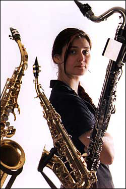 Кёльнская саксофонистка Ангелика Нишир (Angelika Niescier) стала для меня настоящим открытием. Она совсем еще молода: в 1998 г. она закончила в Эссене институт Folkwanghochschule, собрала свой первый квартет, исполнявший только ее авторские композиции, и стала работать с Дюссельдорфским Театром, сочиняя и исполняя музыку для его спектаклей. Музыка Ангелики ярко эмоциональна и в то же время глубоко оригинальна - она никого в особенности не копирует, хотя находится, несомненно, в русле современных поисков (как европейских, так и американских). Композиторский элемент в ее музыке достаточно силен, но при этом все участники ансамбля имеют возможность протяженных импровизационных высказываний (и, что более важно, им есть что в ходе этих импровизационных эпизодов сказать и музыкальными средствами рассказать своему слушателю!). Нет ни подчеркнутой экзальтации, ни сценической истерики - и тем не менее общий эмоциональный настрой имеет весьма высокий градус, при том что не видно никакого академизма, никакой "математики". Весьма достойно!