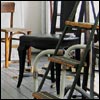 "Kleine aber heftige Eingriffe nimmt Alexej Meschtschanow bei seinen Objekten vor. Stühle, Tische, Schränke oder Betten werden durch Metallgestelle erhoben, so dass der direkte Kontakt des Möbelstücks zum Boden nicht mehr besteht. Die Einrichtungsgegenstände sind mit Schrauben, die durch die Beine gebohrt sind, am Untersatz befestigt. Wie Prothesen funktionieren die angebrachten Erweiterungen, die - einheitlich grau lackiert und mit Gummikappen versehen - einen klinisch sterilen Eindruck vermitteln. Bei genauerer Betrachtung wird deutlich, dass sich Radien, Maße und Stärke der Rohre, die Befestigungselemente sowie die Art der Fußkappen bei jedem Objekt unterscheiden. Die Ausarbeitung der Gestelle orientiert sich an dem jeweiligen Modell. Die Formensprache der hölzernen Fundstücke wird in die Ästhetik des lackierten Stahlrohrs übersetzt.