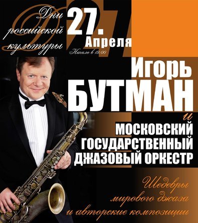 Im Rahmen des Festivals „II. Russische Kulturtage“ werden am 27. April 2013 Igor Butman und das Moskauer Staatliche Jazz-Orchester dem Publikum in Baden-Baden Meisterwerke des internationalen Jazz und Eigenkompositionen vorstellen.