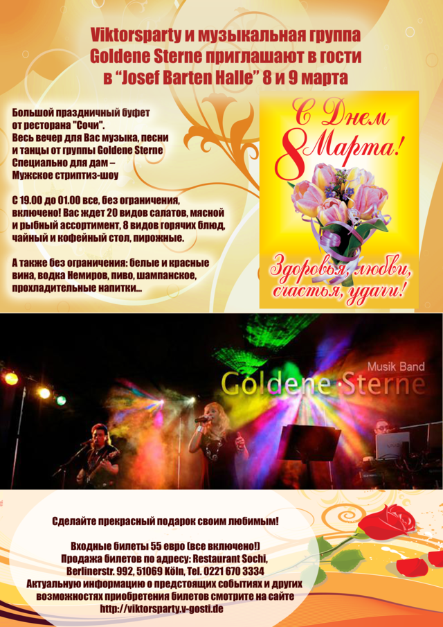 Viktorsparty и музыкальная группа Goldene Sterne приглашают в гости в “Josef Barten Halle” 8 и 9 марта