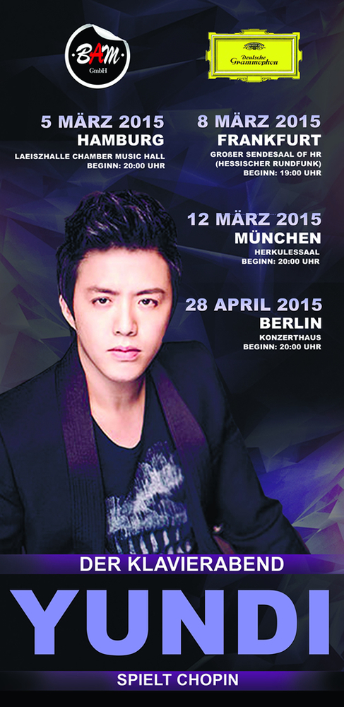 YUNDI schaffte den Sprung auf die internationale Bühne, als er mit 18 Jahren den ersten Preis des 14. Internationalen Chopin-Wettbewerbs in Warschau gewann. Er war der bis dahin jüngste und erste chinesische Preisträger in der Geschichte der hochkarätigen Veranstaltung. Seitdem gilt er als maßgeblicher Interpret der Werke Chopins. Als Würdigung seines Beitrags zur Kultur des Landes verlieh ihm die polnische Regierung 2010 die Goldmedaille für Verdienste um die polnische Kultur, „Gloria Artis“.