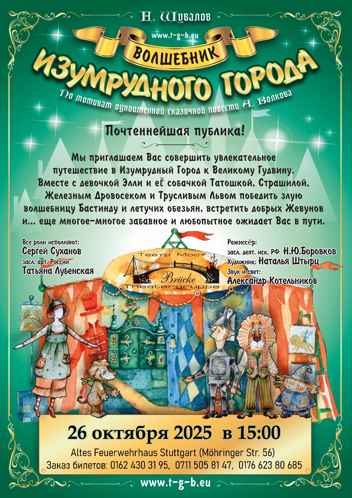 Заказ билетов по телефонам: 0711 52859999, 0711 5058147, 0176 64969587, 0152 53777585